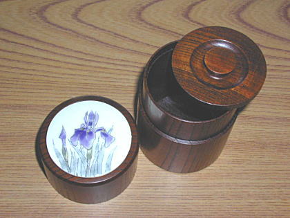 紺ヒスイ系の地色で、素地はハンマーにて地荒し加工してあります。アルミ縁は、制作依頼主様のお手製です。