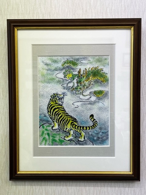 竜虎文オーダー額 総銀張七宝額(額サイズ30cm×24cm)